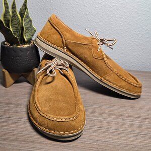 • Moccasin-style suede upper with braided lace closure