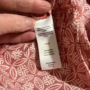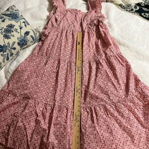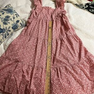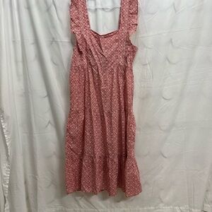 Charming pink dress with white geometric design. Ideal for everyday wear. Soft and comfortable fabric.
