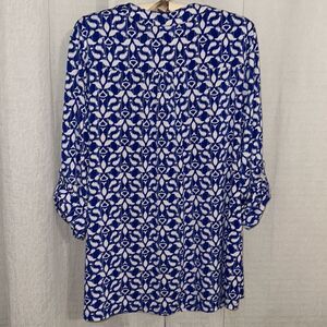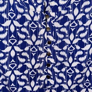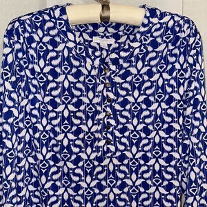 Charter Club 2X Cobalt Royal Blue White Pullover 6 Button Front Long Sleeve Top