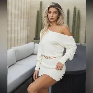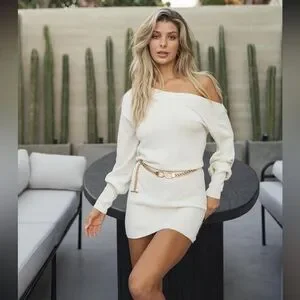 NWT. I only have the sweater dress in black. Beautiful piece. Chic off-shoulder dress in classic black. Perfect for any occasion.