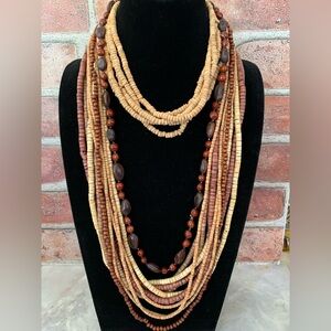 Explore the elegance of this natural beaded necklace set. Featuring rich brown and tan hues, these necklaces add a touch of earthy sophistication to any outfit.