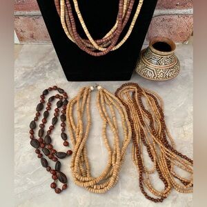 🔥3 Natural Wood Beaded Necklace Set