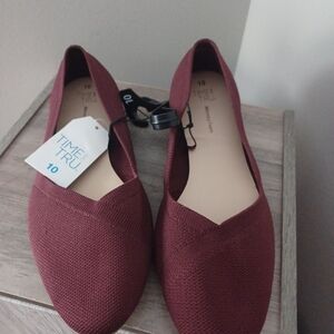 NEW Time And Tru Burgundy Knit Ballet Slip On Flats Sz 10.