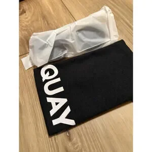Stylish black cat-eye sunglasses from Quay, perfect for adding a chic touch to any outfit. Comes new in original packaging with a branded black protective pouch to keep your sunglasses safe when not in use. Lightweight and comfortable for all-day wear. A great accessory for sunny days and outdoor activities.