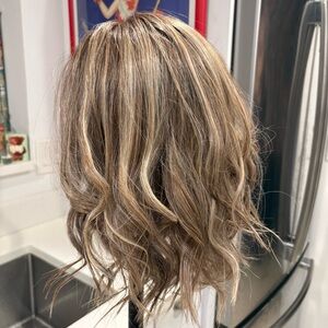 Enhance your look with this stylish blonde wavy hair wig. Perfect for any occasion, this wig offers a natural and elegant appearance.
