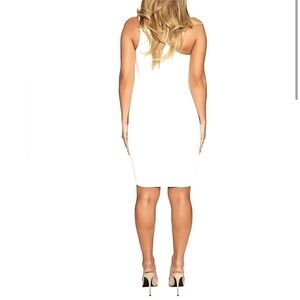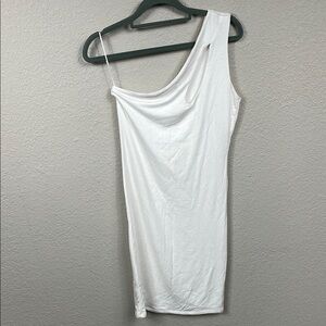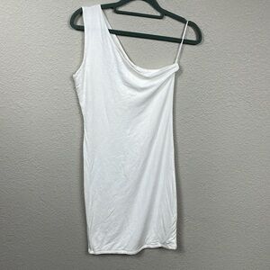 Naked Wardrobe White Bodycon One Shoulder Dress Slit Neck Sz L