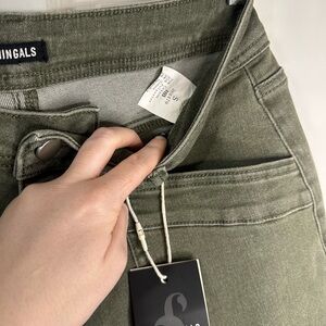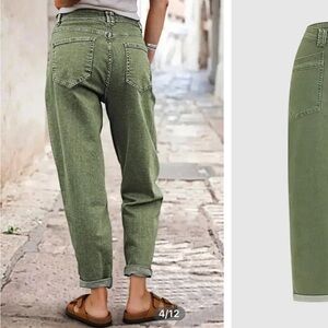 Step out in style with these trendy olive boyfriend straight leg jeans. Designed for comfort and a relaxed fit, perfect for any casual occasion.