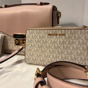 Michael Kors Light Pink Leather Shoulder Bag + Wallet