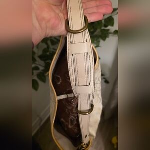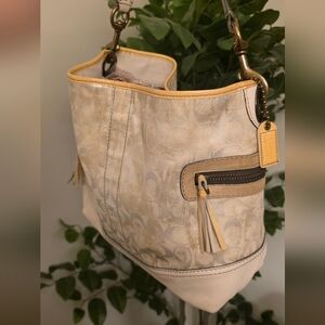 Very cute off white bag with yellow and silver accents! It is a rare tie dye design from Coach. Minimal signs of use/wear. See photos.