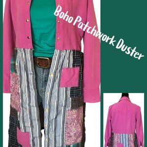 Boho Patchwork Duster Dress, S-M: Upcycled Pink Bohemian Layering Outerwear