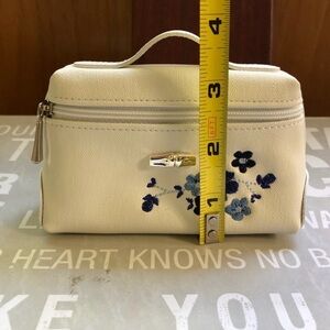 NWOT Longchamp White Coin/Card Pouch with Blue Floral Design