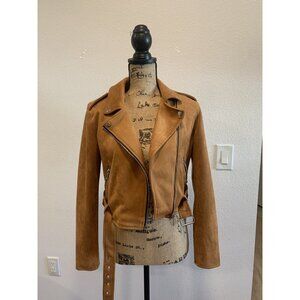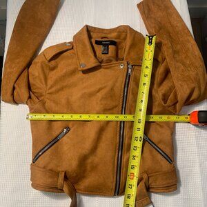(B-202)Forever 21 Women’s Brown Faux Suede Moto Jacket Size S Belted Zip Biker S