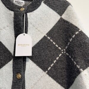Song of Style Black and Light Blue Gray Argyle Cardigan