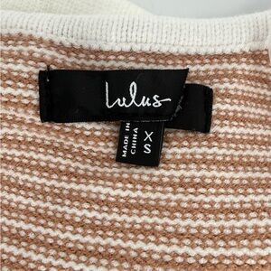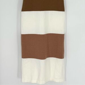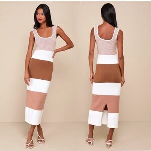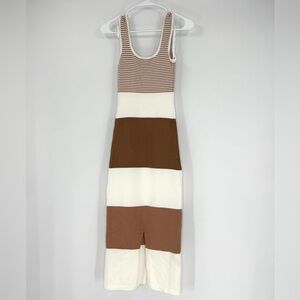 Lulus NWT Easily Gorgeous Ivory and Brown Striped Midi Sweater Dress, Size XS