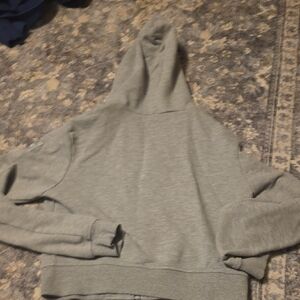 Stylish heather gray hoodie with a sleek design. Features a subtle logo patch.