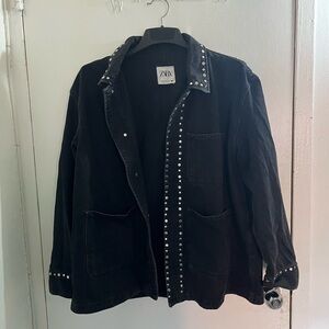 Zara Grunge punk rock Black Denim Jacket with Silver Studs #Modernmideival