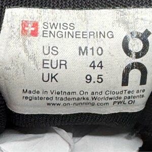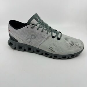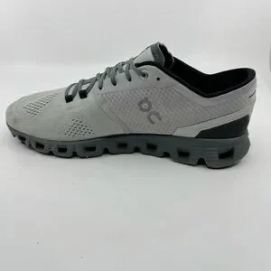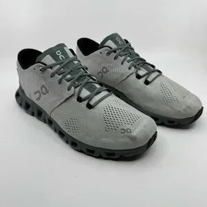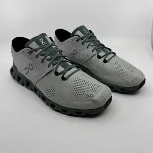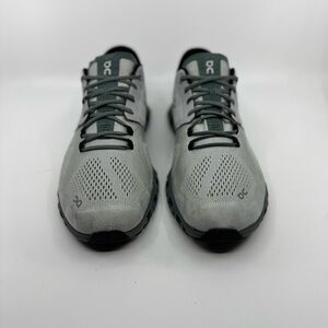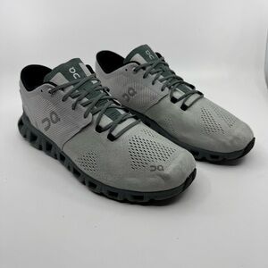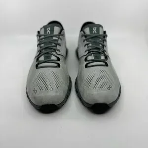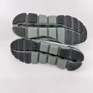 Used Stylish On Running athletic shoes. Features a sleek gray upper with dark green accents. Perfect for running and casual wear.