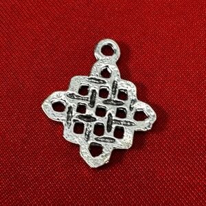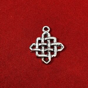 The Antique Silver Tone Celtic Knot Charm Pendant is a stylish and elegant accessory that features a knot-shaped pendant design. This charm pendant is perfect for adding a touch of charm to any outfit, with its antique silver tone adding a timeless and classic feel to the piece. Made with quality materials, this pendant is a unique and eye-catching addition to any necklace or jewelry collection.
