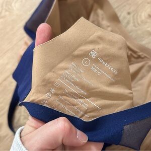 Honeylove Liftwear Crossover Bra in navy blue with mesh trim size large