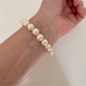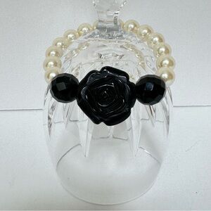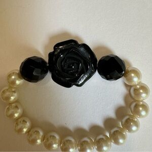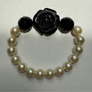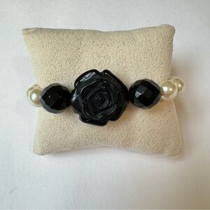 Vintage Anthropologie Black Rose Faux Pearl Stretch Statement Bracelet