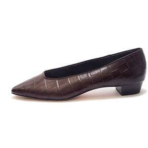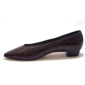 Loeffler Randall Pointed Toe Brown Croc Simone Heeled Flats