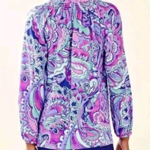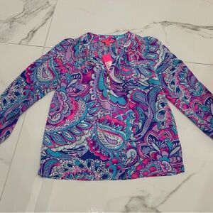 Lilly Pulitzer ELSA Blouse in Mermaids Call Silk Print, NWT, Sz. S