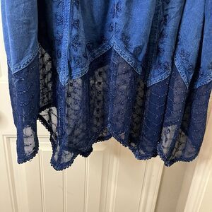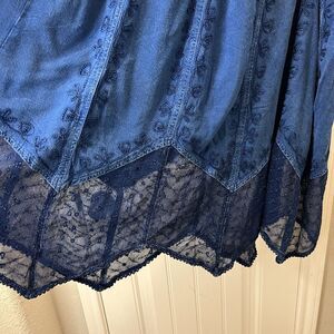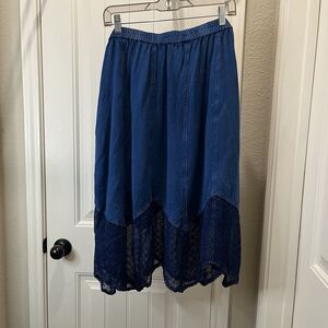 Studio West Blue Handkerchief Boho Lace Hem Midi Skirt Western Womens Size XL