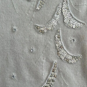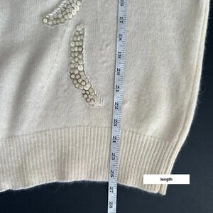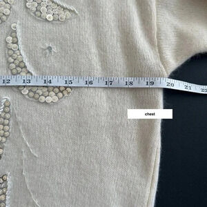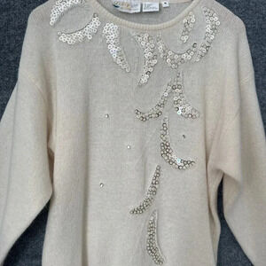 Elegant cream sweater with sequin embellishments. Perfect for adding a touch of sparkle to your wardrobe.