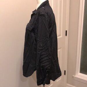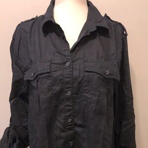 Stylish Denim & Supply RL Expedition button down shirt by Ralph Lauren. 100% cotton. No obvious signs of wear and no flaws. Two buttoned chest pockets. Button straps on shoulders. Sleeves may be worn long, but have strap to secure them when rolled up. Pictures show one rolled up and one left long. It is wrinkled from washing and drying, but not ironing. A lovely, perfect staple for any wardrobe.