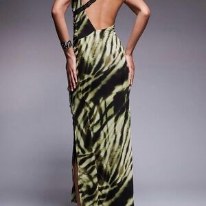 ASOS Zebra Scoop Neck Midi Dress with Asymmetric Lace Detailing and Side Slit