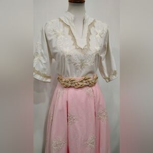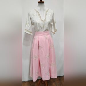 PINK LINEN BLEND PLEATED FULL SKIRT NWT
