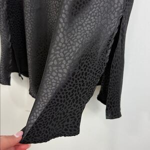 Umgee Black Midi Slip Skirt XL Satin Leopard Jacquard Flowy Elegant Chic