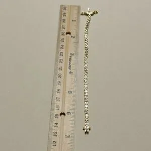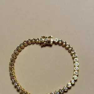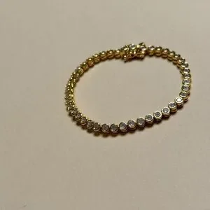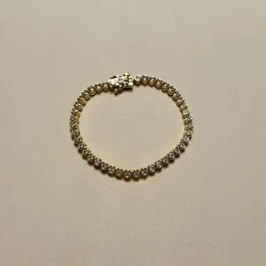 This stunning gold tennis bracelet adds a touch of elegance to any outfit. Perfect for any occasion.