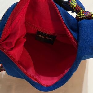 Stylish blue and red women bag with a vibrant design. Perfect for adding a pop of color to any outfit.