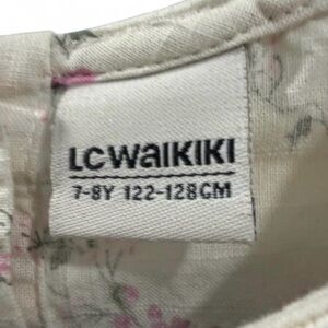 This delightful kids dress features a beautiful floral pattern with a lace collar, perfect for casual outings. The soft cream fabric is adorned with pink flowers, offering a sweet and stylish look.