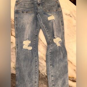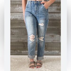 Judy Blue Size 7/28 Boyfriend Fit Cuff Stylish Blue Distressed Women Jeans