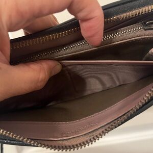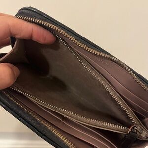 Condition: Pre-loved, recolored. This wallet’s exterior has been recoloured to black. The interior is the original colour. Signs of wear on the exterior but jot noticeable due to recolouring. Having said that all the corners have wear and has been reinforced. Interior has normal signs of wear. The zippered coin compartment has marks from the coins. Interior has been sanitized. The exterior leather zipper pull is new and was just replaced. Overall, it is ready to use and waiting for somebody to enjoy.