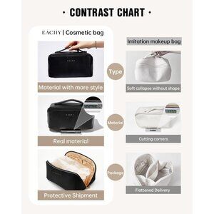 Quality Materials: Crafted from smooth, waterproof PU leather that’s easy to clean, with a durable polyester lining. The makeup brush compartment is made from clear, waterproof TPU to keep brushes neatly stored and visible.