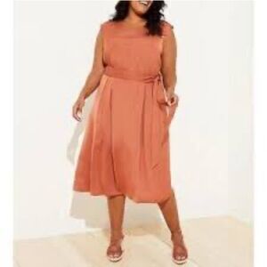 LOFT Plus satin Rust Midi Dress with waist tie size 18