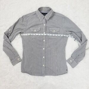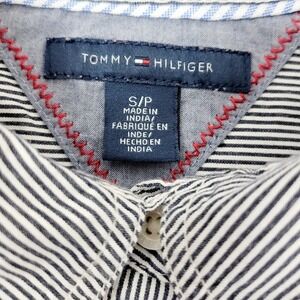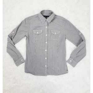 Tommy Hilfiger Womens Striped Button Down Shirt Utility Pocket Roll Tab Sleeve