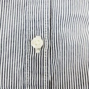 Keywords: pinstripe shirt, utility shirt, button up, collared shirt, long sleeve, casual wear, workwear, resort wear, classic, versatile, tailored fit, preppy, smart casual