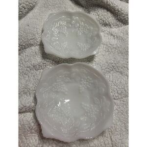 Vintage ANCHOR HOCKING Milk Glass Grape Leaf Embossed Grapes Decorative Bowl 2