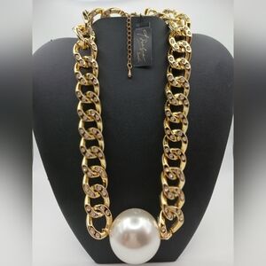 THALIA SODI Large Pearl Statement Necklace Gold Tone & Crystals. NEW WITH TAG