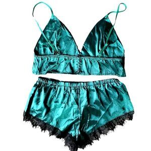 Lingerie l 2-Piece Set l Emerald Green l Lace Accent l Adjustable Straps l M New