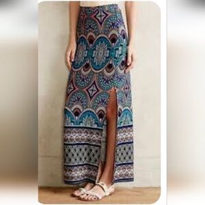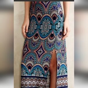 ANTHROPOLOGIE Maeve Crystallism maxi slit skirt Geometric Patten size.small soft 95% Rayon 5% spendex size small with a but of stretch maxi dress .in Good pre- owned condition . comes from SF PF 🏡