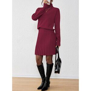Features: Cozy ribbed knit set with a fitted high-neck pullover featuring long sleeves, perfect for layering or wearing alone. The pleated mini skirt has a drawstring elastic waistband to hug your curves comfortably. Made from soft, stretchy fabric that’s perfect for fall, winter, or spring.