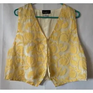 Vtg Mary McFadden Vest Womens Medium Jacquard Linen/Rayon Paisley Artsy Hippie L