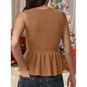Women's Knit Sleeveless Ruffle Hem Sweater Vest X-Large Casual Wear