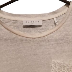 Sandro Boxy Cropped Lace Pocket Cream Ivory Tshirt Womans Lagenlook