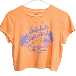 Keywords: Billabong, cropped, tshirt, graphic tee, tropical, hand dyed, beach wear, summer, casual, boho, surfer, skater, palm trees, orange